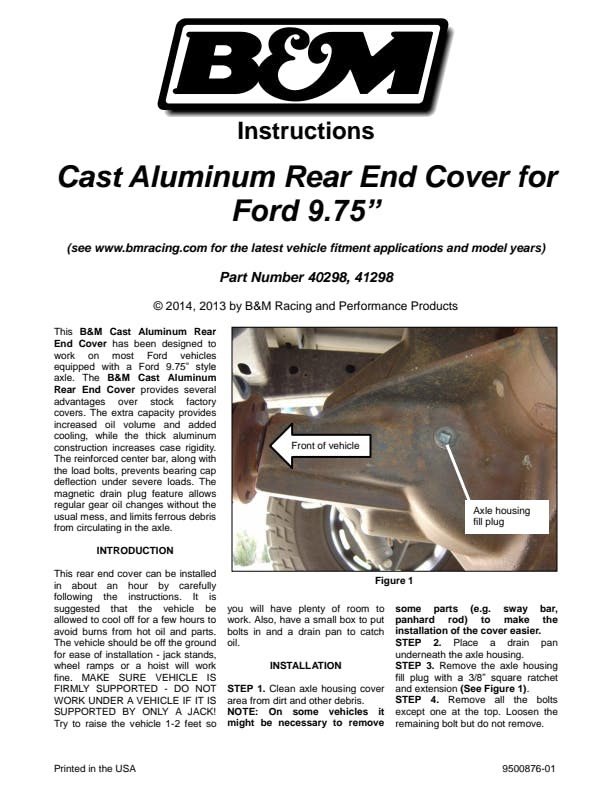 Designed to fit most vehicles with Ford 9.75-inch differential, however vehicles may have other interfering components that may require modifications or moving of existing brackets, require longer cover bolts or different cover bolts, clearance of sway bars etc. - Checking for adequate clearance and fitment for your application should be verified prior to purchase & installation. Refer to ID guide and measurement drawings for specifications.