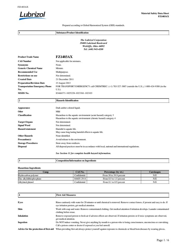 | SDS Sheet Number | HR4 |