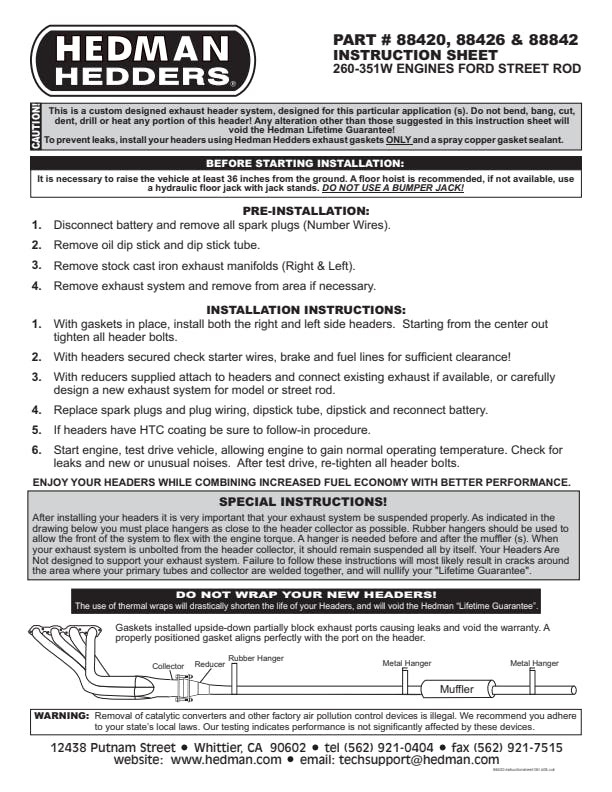 Header(s), new bolts, gasket(s) to head, reducer(s) and hardware, instructions, Header(s), new bolts, gasket(s) to head, reducer(s) and hardware, instructions, Header(s), new bolts and gasket(s) to head, reducer(s) and hardware, instructions |