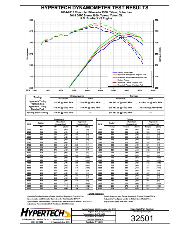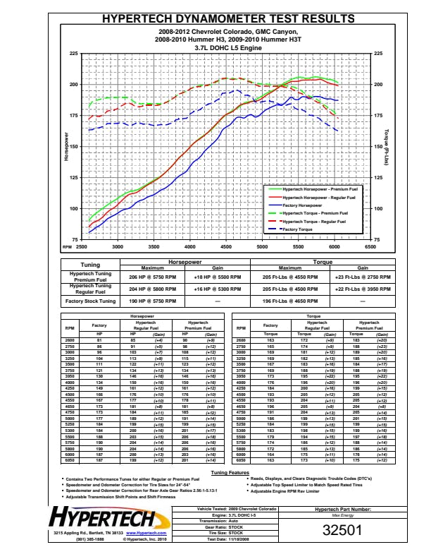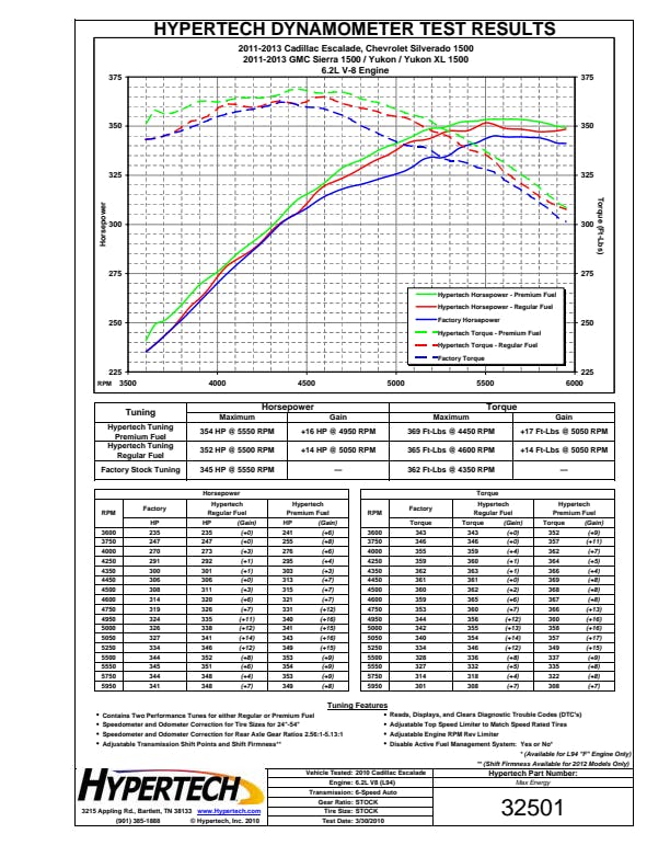 RPM Rev Limiter; Top-Speed Limiter; Back-To-Stock Tuning; Tire Size/Rear Gear Ratio Change; Transmission Adjustments; Cooling Fan On/Off TemperaturesApplication Summary: