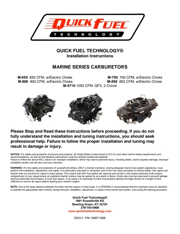 | Product Type | Carburetor, Quick Fuel Marine Carburetor |
